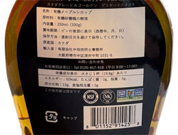 | 1) | 有機JAS認定のオーガニックメープルシロップです。 |